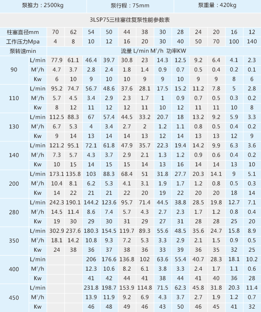 ※ 你選型時(shí)表中流量不合適,可用電磁調(diào)速,變頻調(diào)速,變換柱塞直徑來調(diào)節(jié)流量,滿足選型需要。